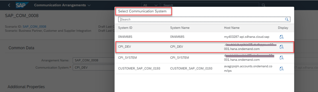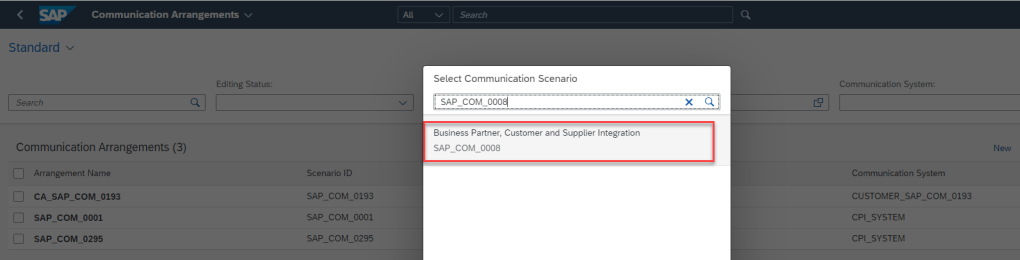 As you see, we want to send Business partner data to external system, so we get communication scenario SP_COM_008