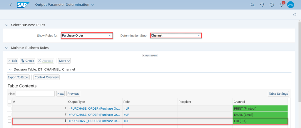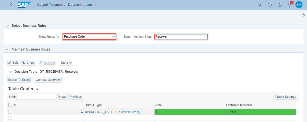 Next, we will configure output type by using OUTPUT PARAMETER DETERMINATION app.