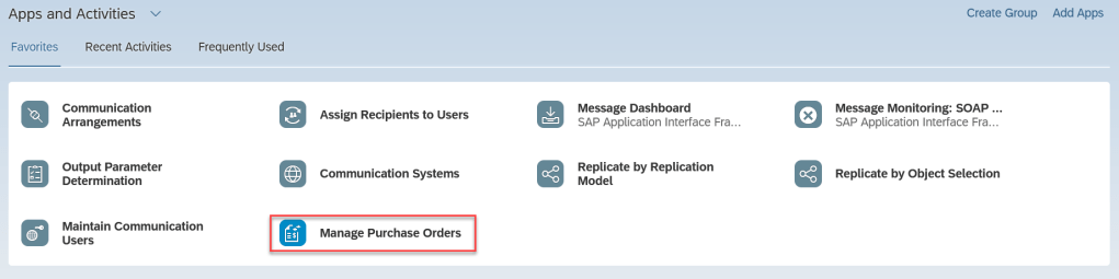 We will send purchase order to external system by using MANAGE PURCHASE ORDERS app