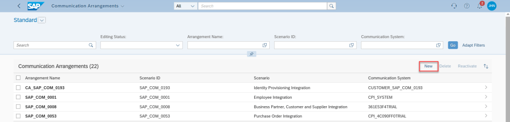 After select communication scenario on API hub, we will use COMMUNICATION ARRANGEMENTS app to create scenario.