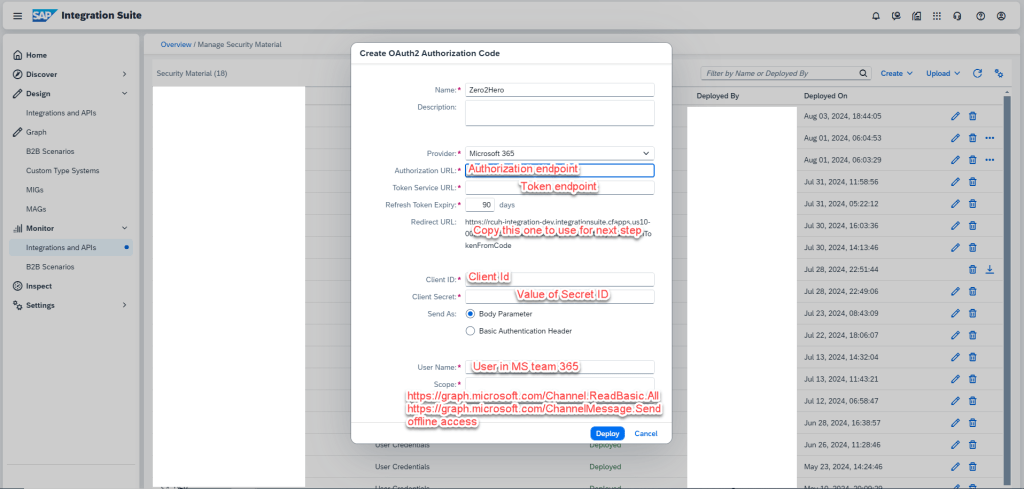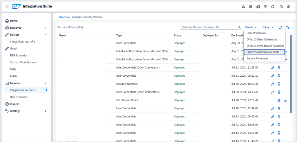 Create OAuth2 Authorization Code Credential in your SAP Cloud Integration Tenant