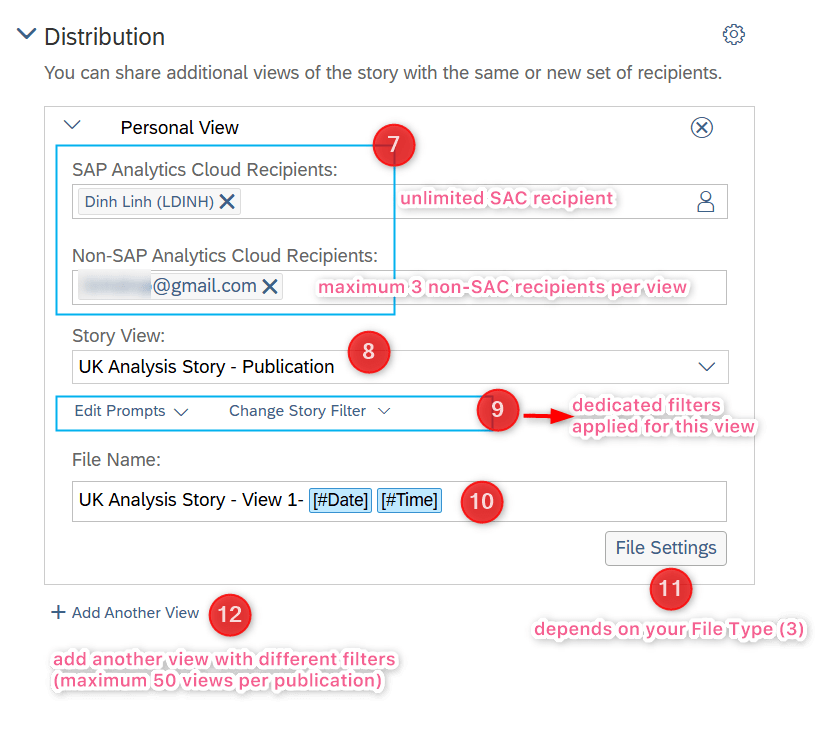 (9) Edit Prompts and Story Filter: Depends on your prompt and story filter setup, you can change the filter value for this view’s recipients.