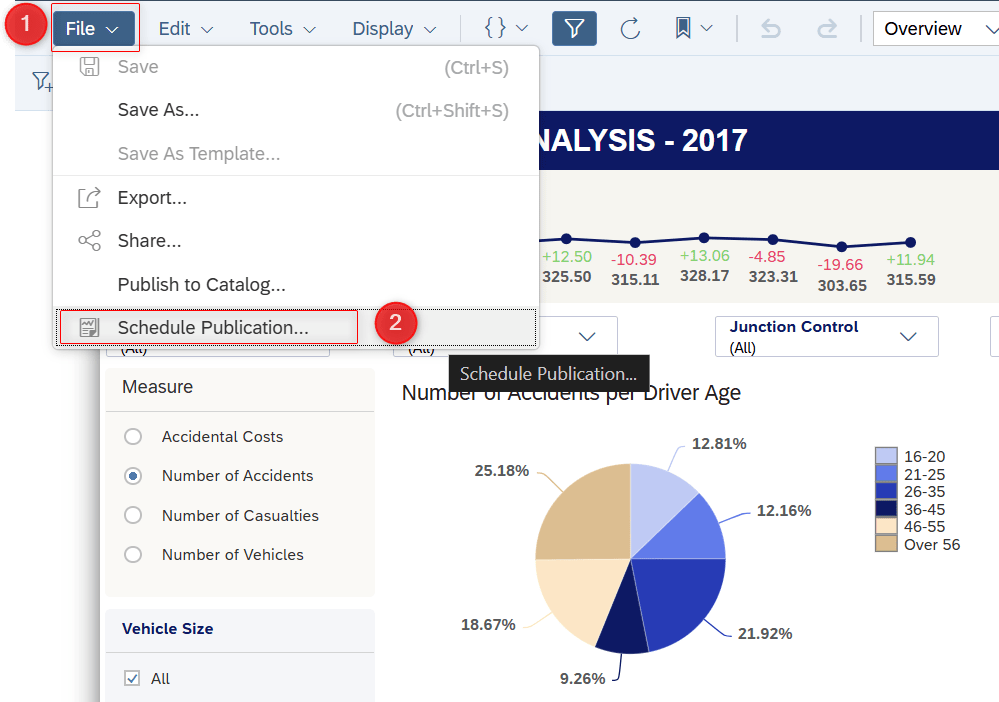 Step 1: Access SAC story > File > Schedule Publication…: