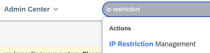 - Go to SF tenant > Type “IP restriction” > IP Restriction Management > Add IP Adress from step 2 to Whitelist