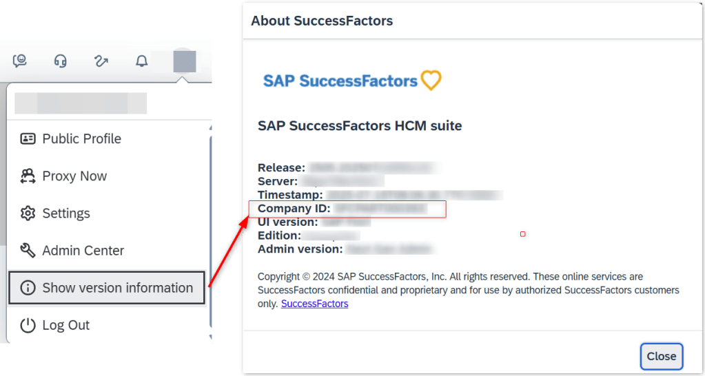 Go to SF > Profile > Show Version Information > Copy Company ID