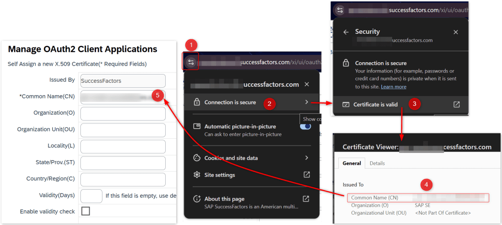Go to your SF tenant > on URL panel, select Certificate and copy Common Name > select Generate