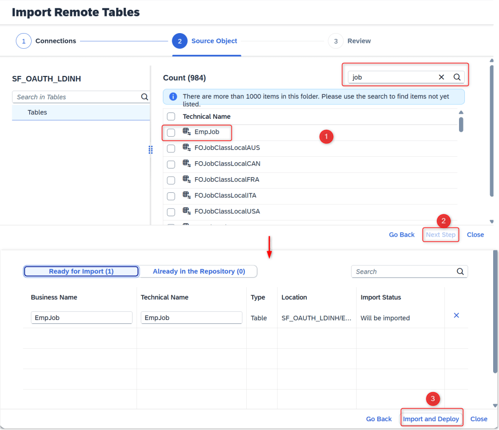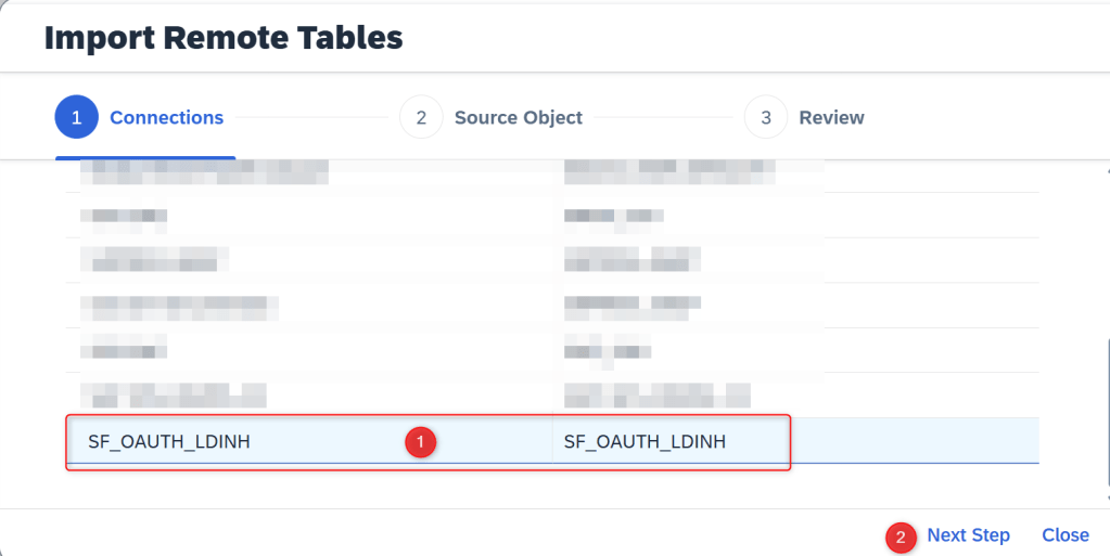 Go to SAP Datasphere > Data Builder > Import Remote Tables > Select SF Connection > Next Step